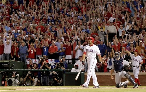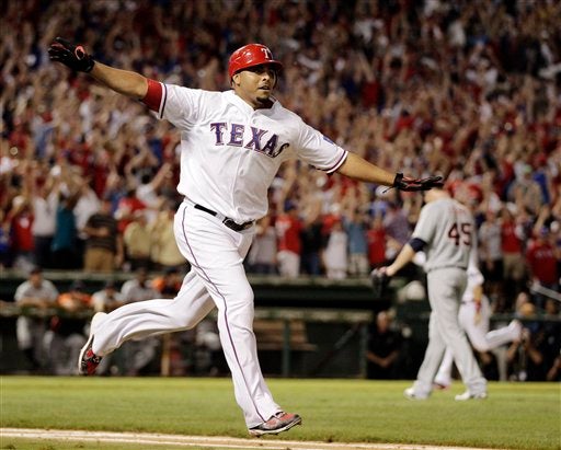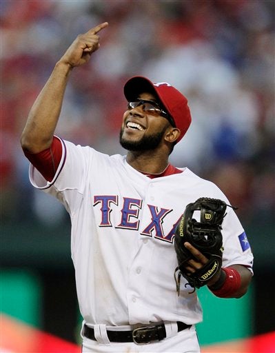 Elvis Andrus celebra tras cachar la bola. FOTO: AP