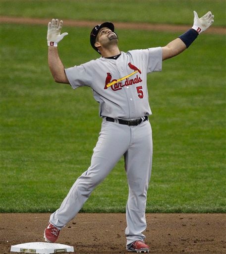 Albert Pujols en segunda base. FOTO: AP