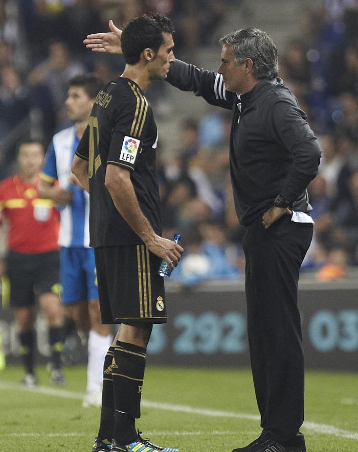 Mourinho da instrucciones a Arbeloa. FOTO: EFE