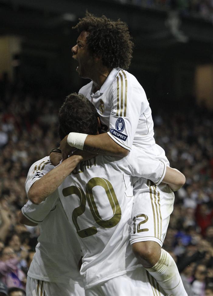 Celebración del Real Madrid al minuto 26. FOTO: EFE