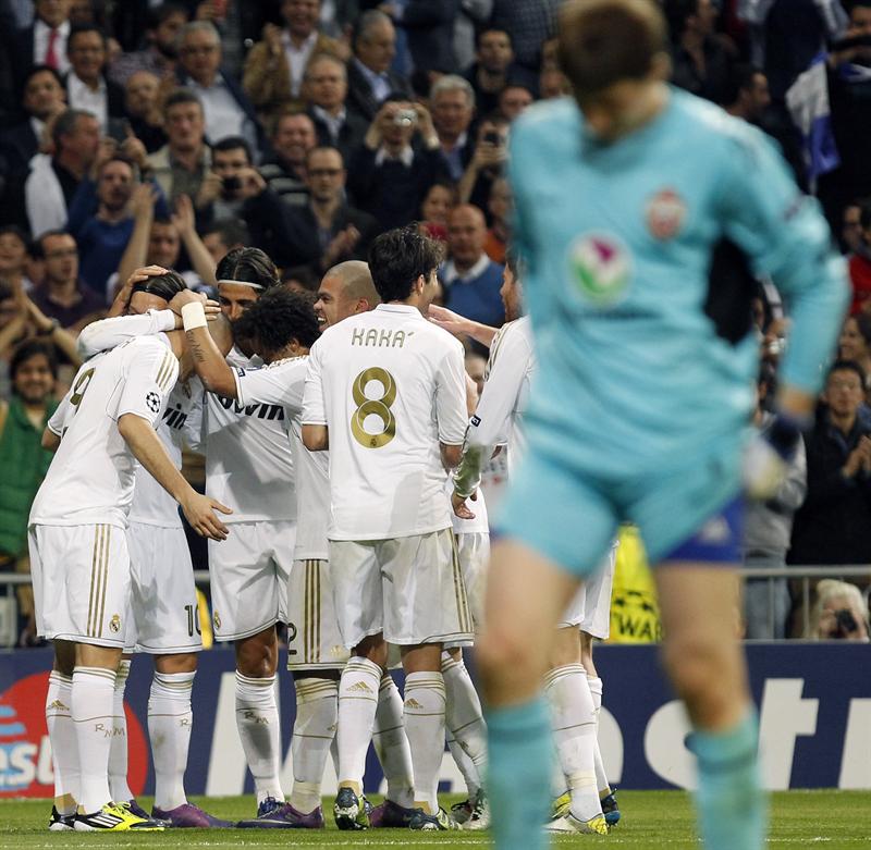 Los merengues festejan el 4-1. FOTO: EFE