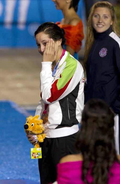 La mexicana no pudo contener las lágrimas en el podio. FOTO: MEXSPORT