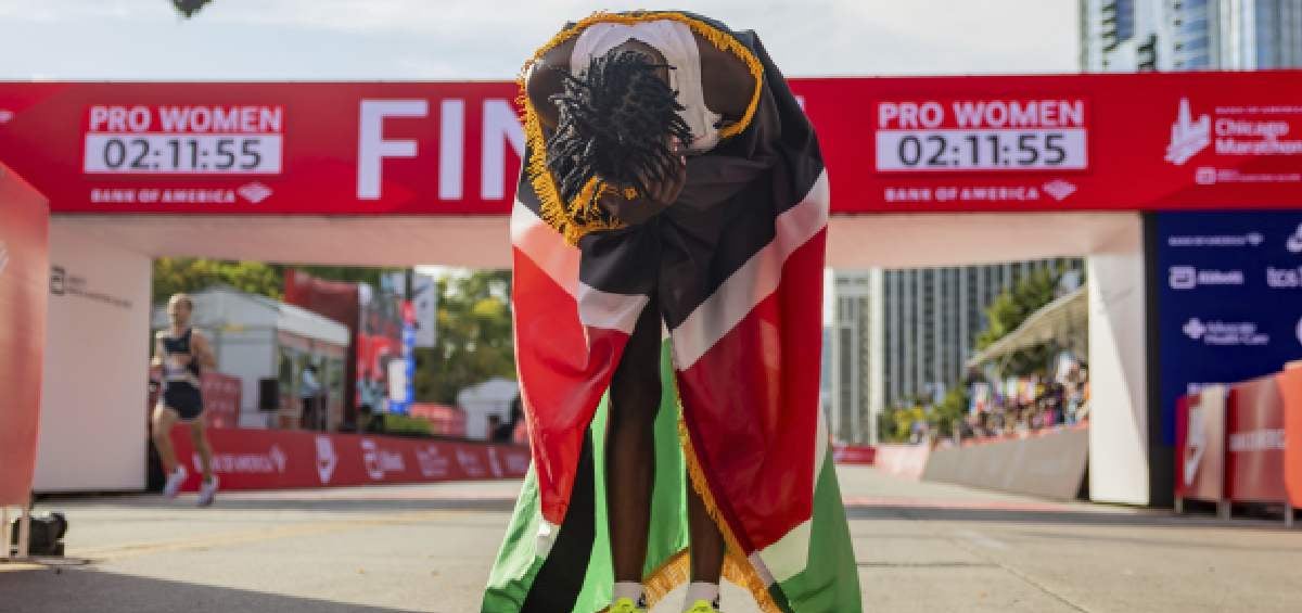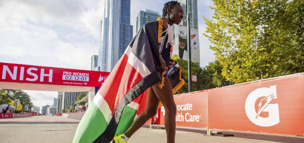La keniana de 30 años eclipsó la previa plusmarca de 2:11:53, fijada por la etíope Tigist Assefa en el Maratón de Berlín el año pasado. La etíope Sutume Asefa Kebede entró segunda al Grant Park el domingo con su registro de 2:17:32.