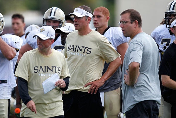 El staff de entrenadores de los Santos en una práctica | AP