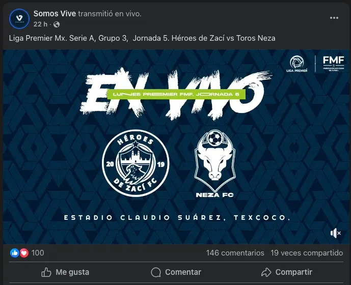 La página en cuestión es llamada Vive Siete, quienes actualmente cuentan con más de 20mil seguidores en Facebook, plataforma por la cual habitualmente transmiten los partidos semana con semana.