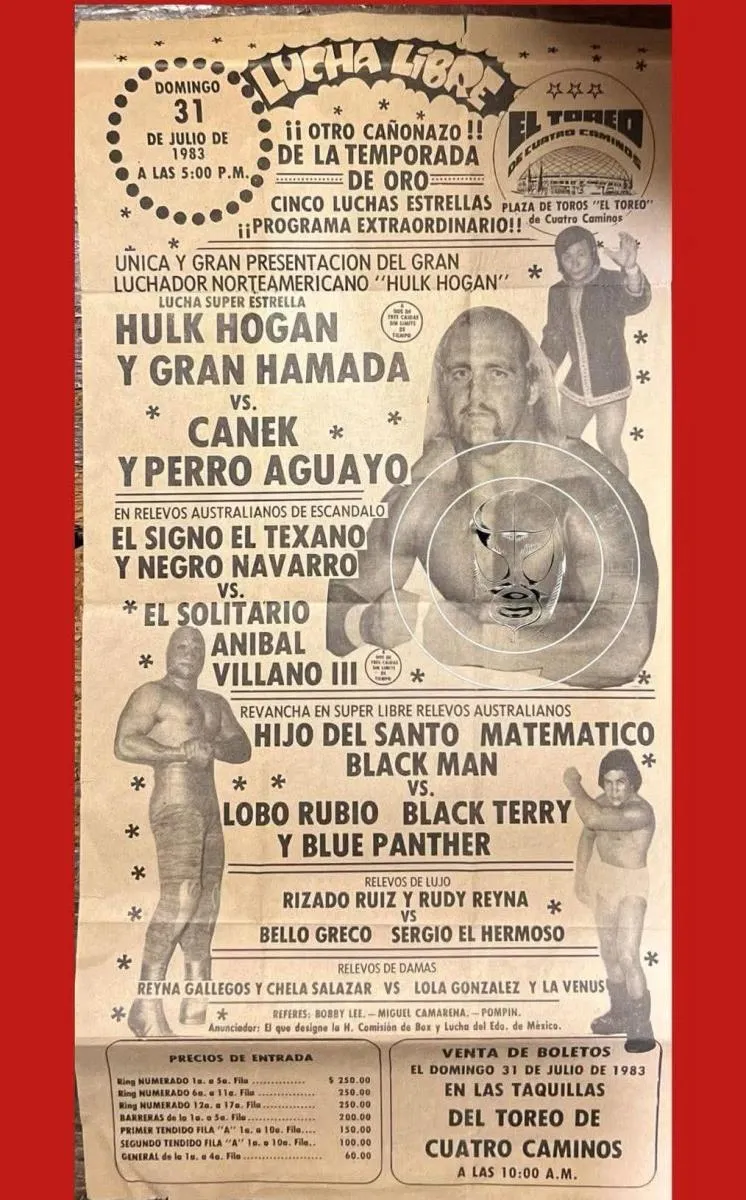 Hulk Hogan visitó la capital mexicana en el año de 1983, específicamente en el toreo de cuatro caminos, donde disputó un duelo en parejas, siendo compañero del gran Hamada y enfrentando al Perro Aguayo y a Canek.