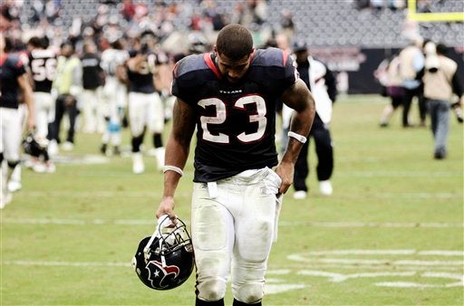 Arian Foster sale del emparrillado. FOTO: AP