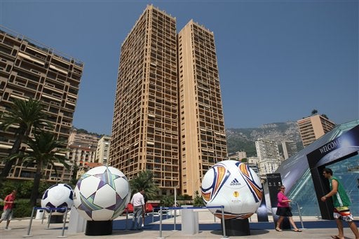 El Giant Europa League (der), Champions League a la (izq) y Grimaldi Forum. FOTO: AP