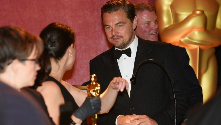 “¿Haces esto todos los años? Yo no sabría", bromeó DiCaprio con la encargada de grabar el nombre del histrión en la estatuilla.