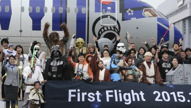 La aerolínea japonesa acordó con Disney, dueña de la marca Star wars, el uso durante cinco años de las decoraciones alusivas; en ese mismo periodo, la empresa lanzará otros productos fílmicos y televisivos sobre la saga galáctica.