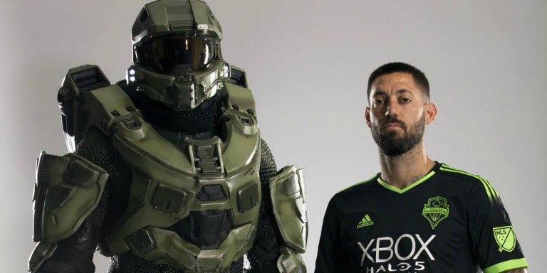 Algunas figuras del equipo de los Sounders, como Clint Dempsey y Andreas Ivanschitz, modelaron la nueva equipación junto a Masterchief, en una sesión de fotos promocional.
