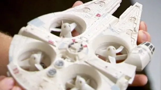 La réplica de la nave de Han Solo puede volar ya que contiene 4 hélices que le ayudan a sostenerse en el aire.