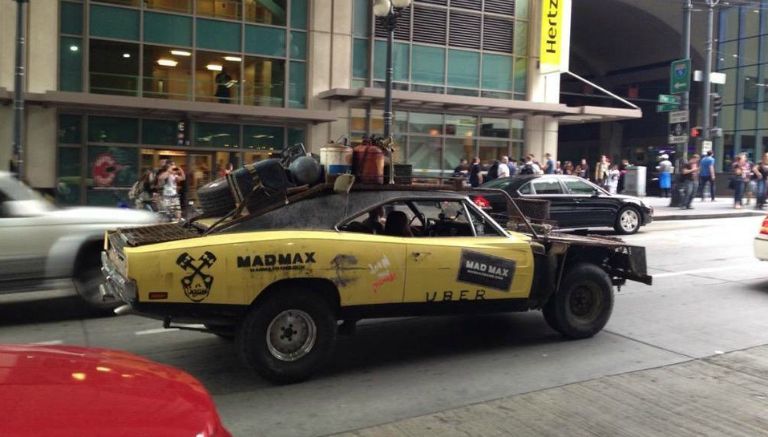 Para conmemorar el lanzamiento del videojuego basado en la película ‘Mad Max’, la compañía Uber en Seattle se unió a Warner Bros para llevar a sus pasajeros en automóviles adaptados como los clásicos de la famosa película.