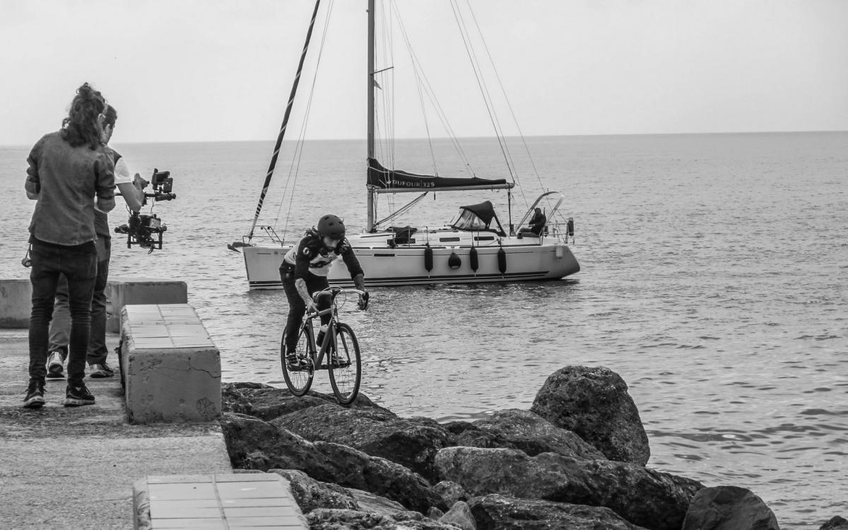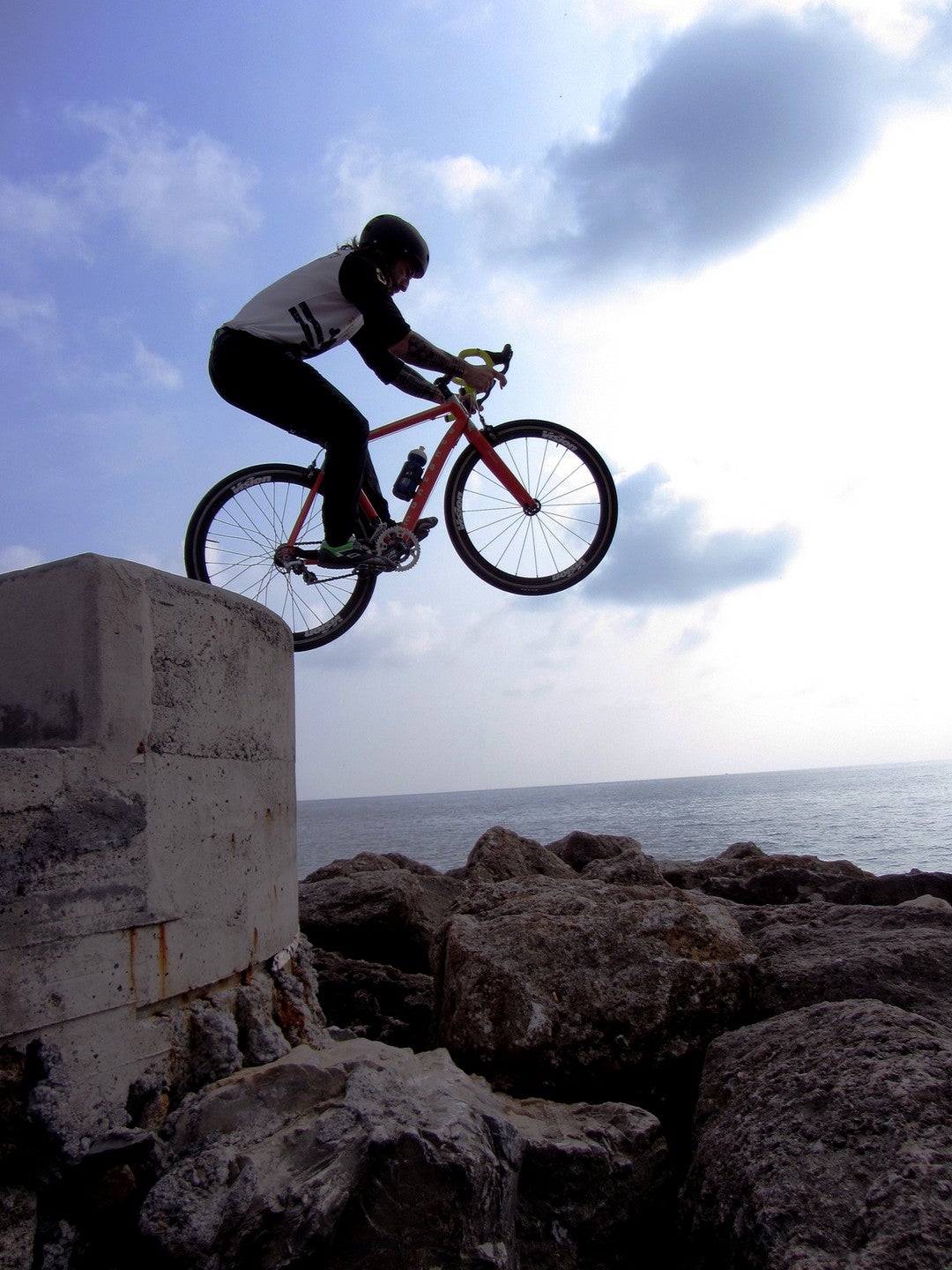 En su bicicleta, surca por los aires